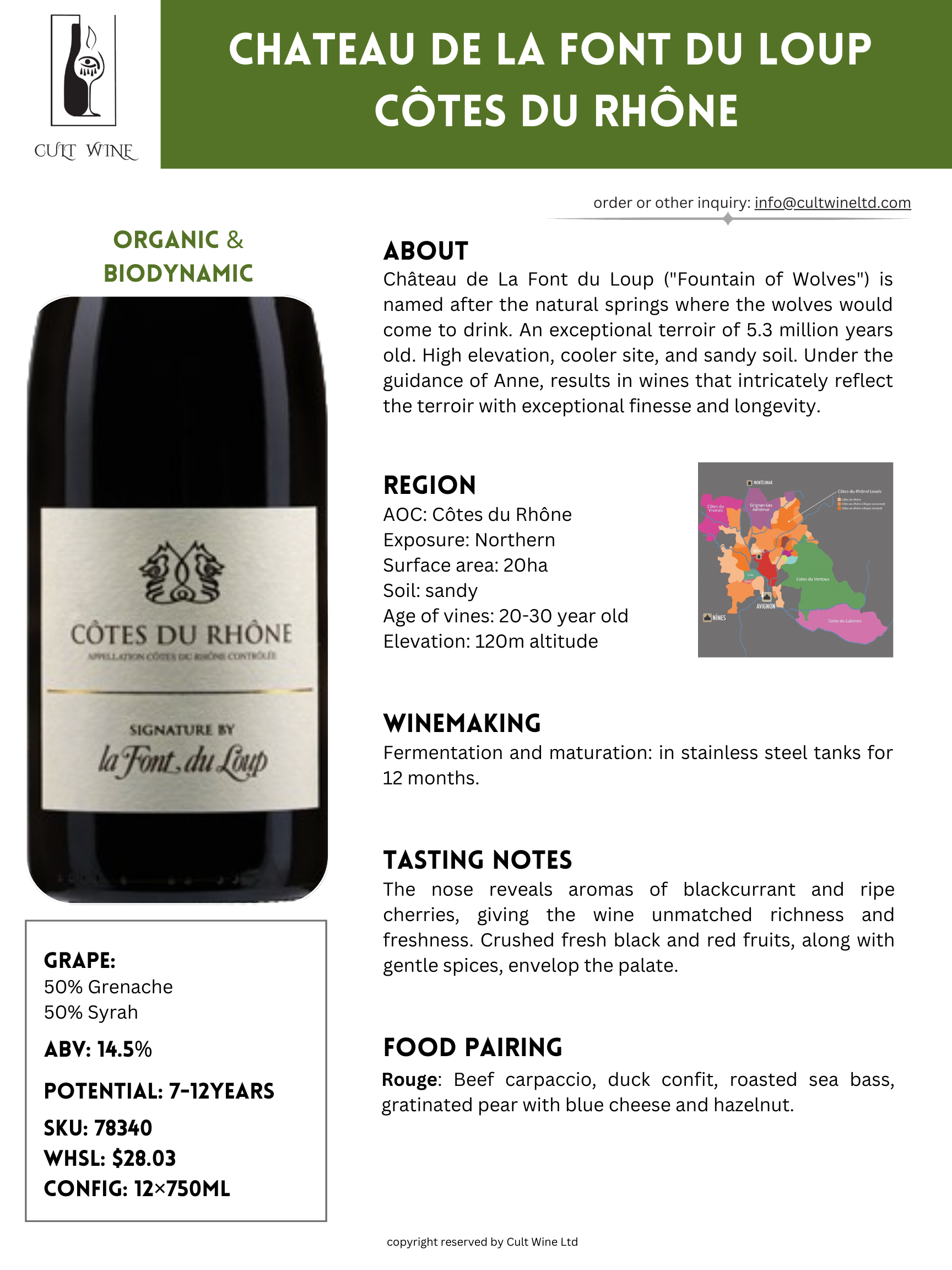 Château de la Font du Loup, situated in the heart of Châteauneuf-du-Pape, is an esteemed winery celebrated for its exceptional expressions of Southern Rhône wines. With a history dating back centuries, the estate’s commitment to organic and biodynamic practices, under the guidance of Anne, results in wines that intricately reflect the terroir with exceptional finesse and longevity.